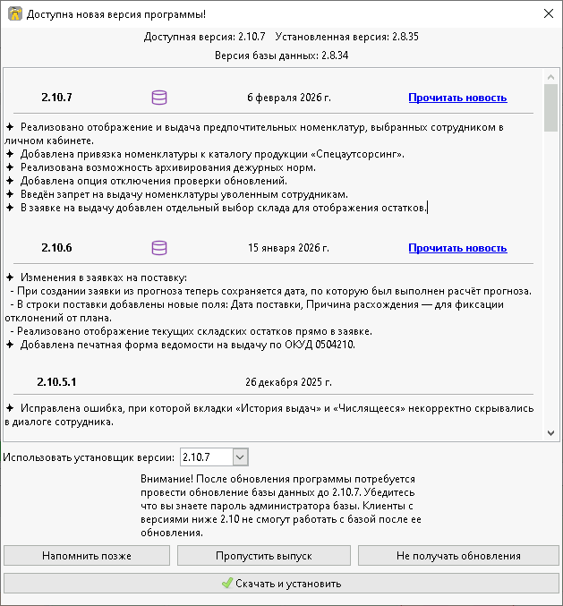 • Обработаны редкие сценарии, при которых обновление базы мог выполнить другой пользователь, а у остальных вход в программу становился невозможен из-за пропущенных обновлений для выпуска.